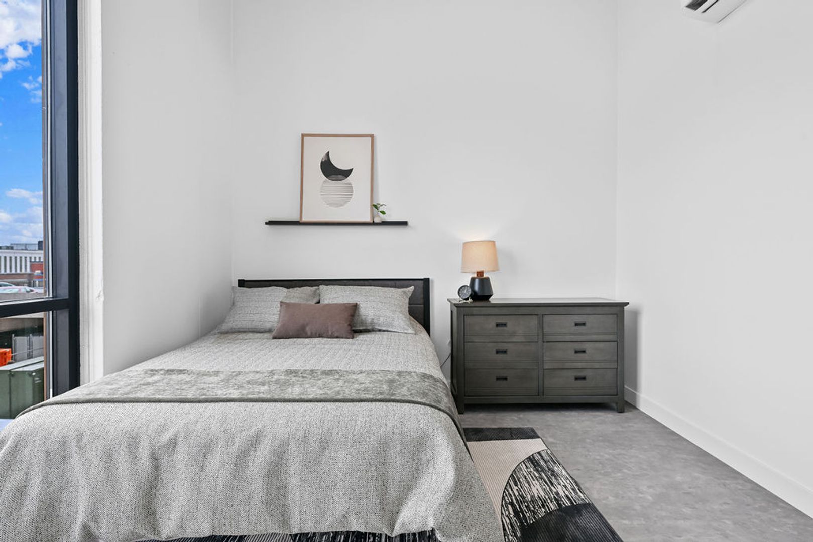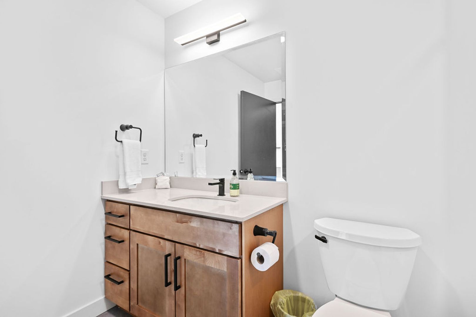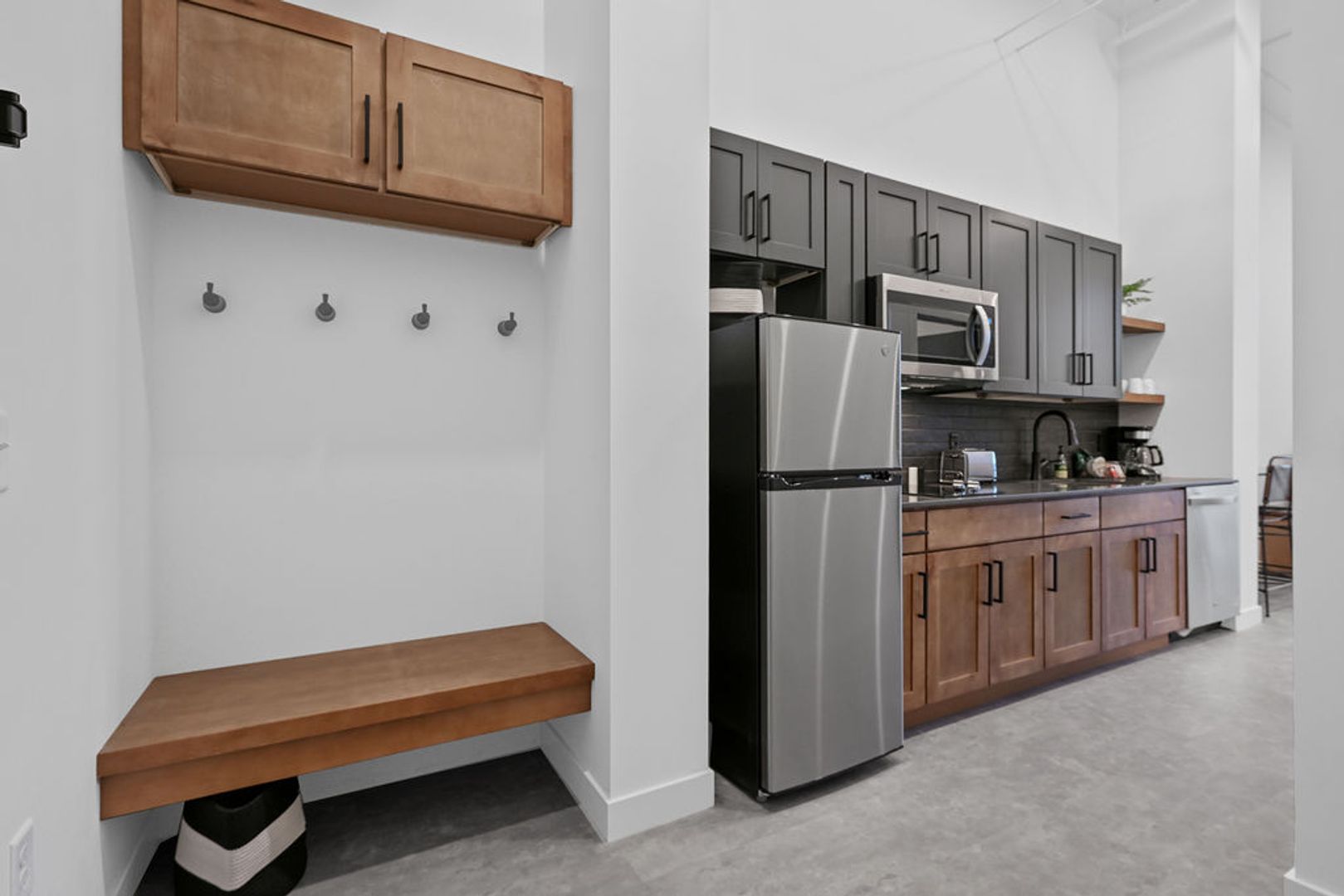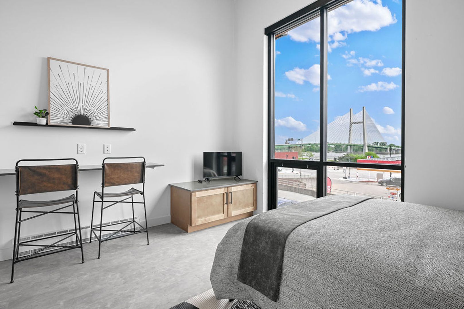 This is a studio unit in Urbane424. Urbane424 is conveniently located in downtown Burlington only blocks from the Mississippi River with access to many local establishments. This 5+-story mixed-use building features 52 residential units, a combination of studio, 1 bedroom, and 2 bedroom units, along with over 3,100 square feet of commercial space. Features of Urbane424 include a building front with an urban street space and also quieter urban green space for a variety of living options. Courtyard facing units also capture specific views of the Mississippi River and bridge. Public green space is created in the open courtyard concept and extends the pedestrian zones of the city and to stitch this project into the vibrant activity of downtown. Micro retail spaces provide frequent points of entry for pedestrian activity with the opportunity for new retail ventures to start-up in smaller footprints.